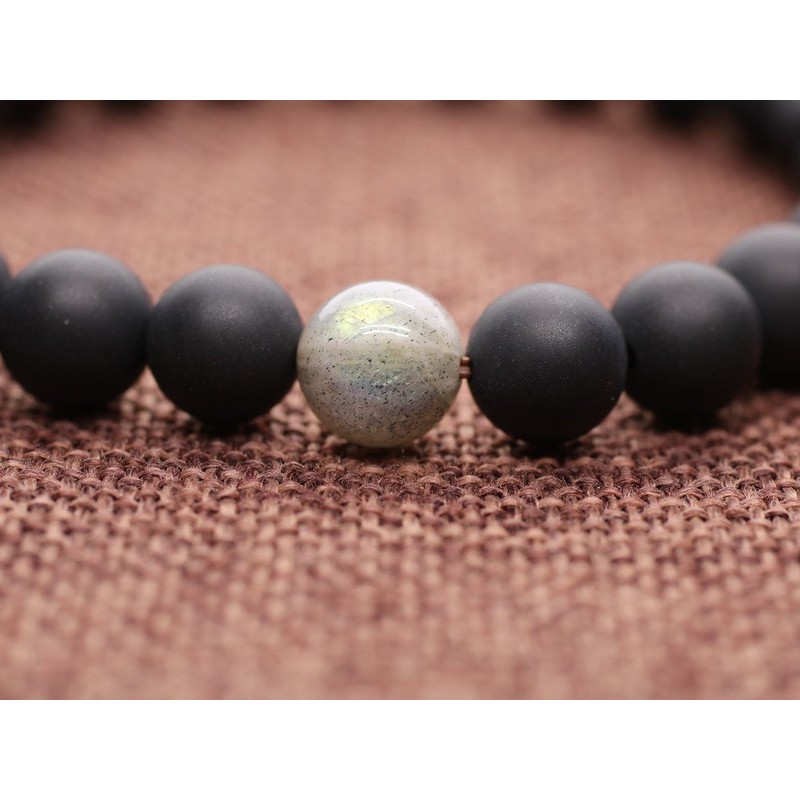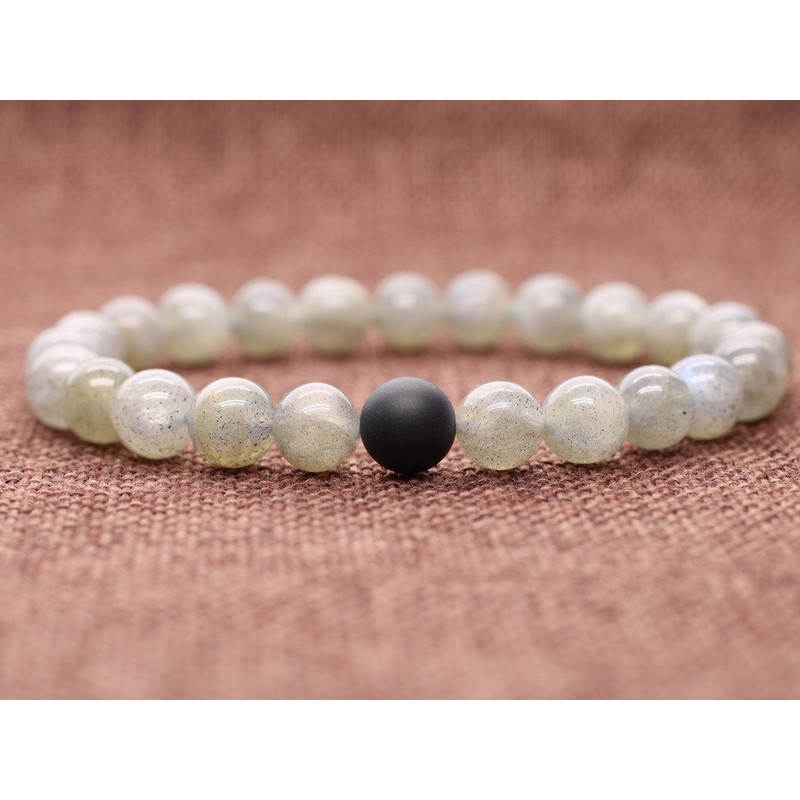 - These his and hers bracelets features 8mm Labradorite & Matte Onyx