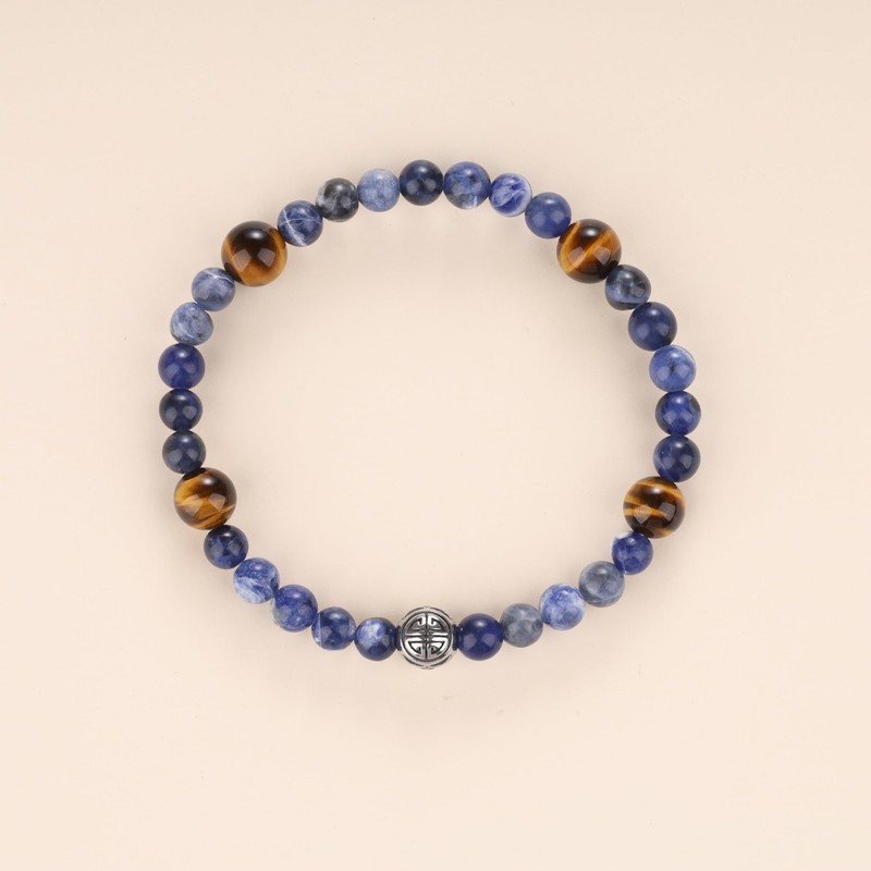 - Material: This men's bracelet consists of 6 mm sodalite, 8 mm yellow tiger's eye and 8 mm stainless steel beads with a longevity pattern.