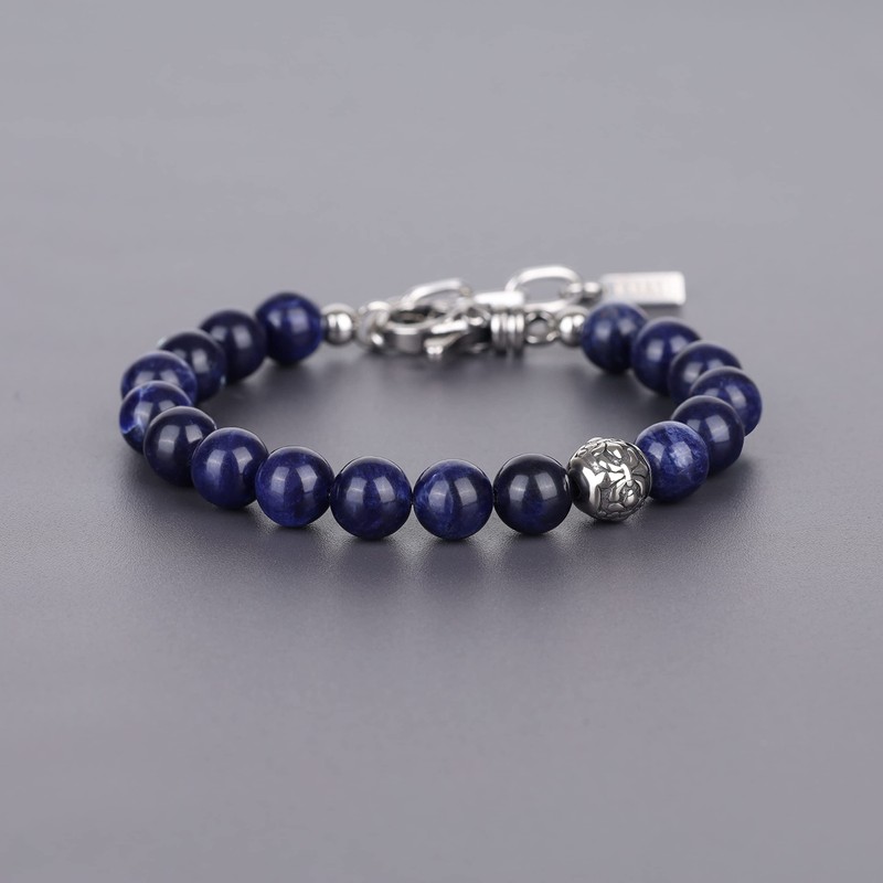 - Men's bracelet material: 8 mm sodalite, 8.5 mm Fleur De Lis charm made of stainless steel