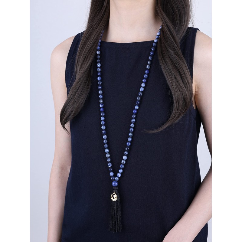 COAI OM Charm Hand Knotted Tassel Sodalite Stone 108 Mala Beads Necklace
