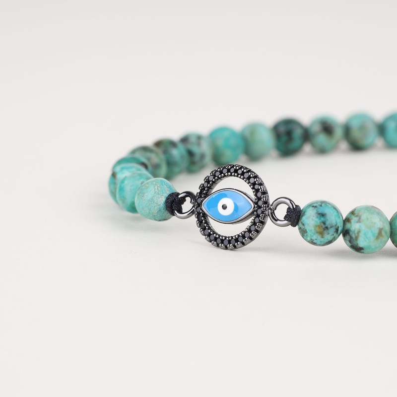 COAI Pulsera de piedra con abalorio de mal de ojo, Piedra, africano-turquesa