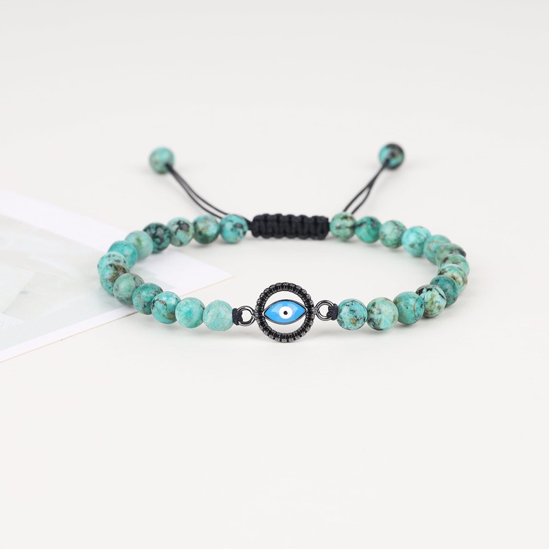 - Diseño especial: decorado con el dije del mal de ojo añade un simbolismo elegante y de protección a esta pulsera de piedra, se dice que la pulsera de mal de ojo protege al usuario de cosas malas