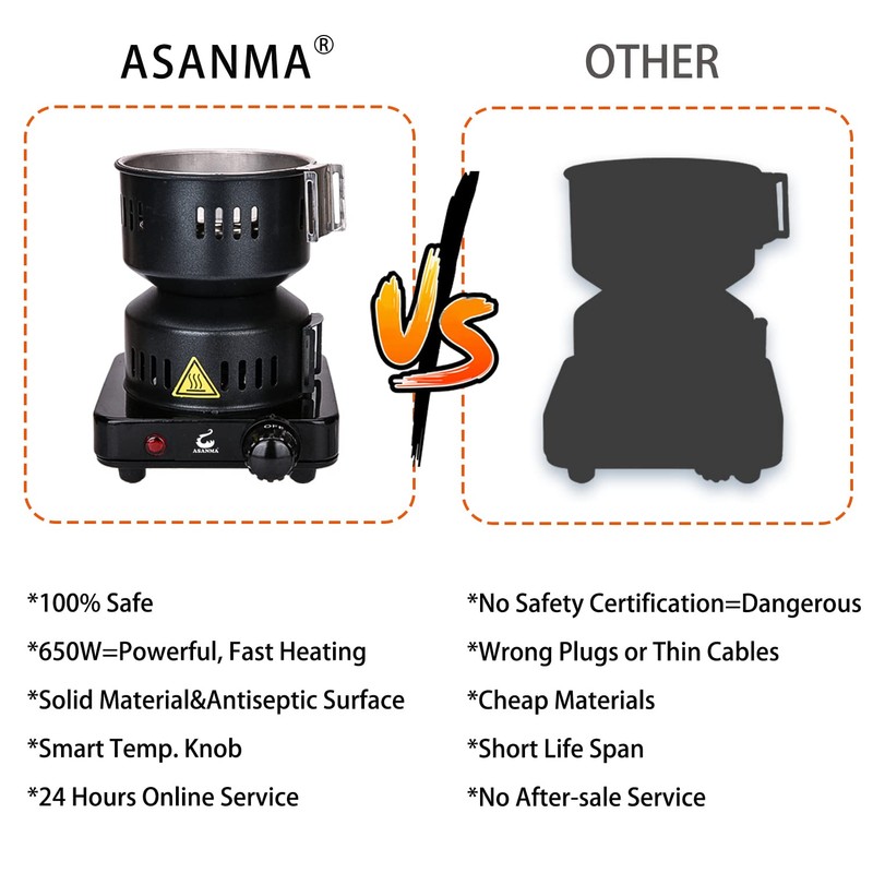 - Coal Burner - ASANMA electric stove is 100% safe to use, also have overheating & circuit protection.When heating temperature too high,automatic trip protection.(NOTE: please do not leave when you use it)