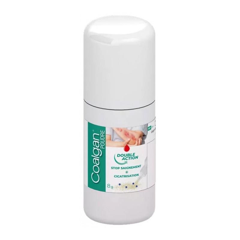 Coalgan Stop Bleeding and Healing Powder 8 g quickly stops bleeding and promotes healing of superficial skin wounds: abrasions, cuts or hard-to-reach areas.
