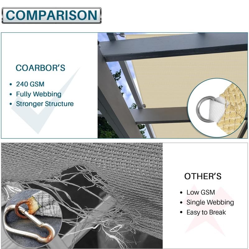 Coarbor Sun shade Sail /Garden Canopy fits outdoor space of most families, offices or public places.