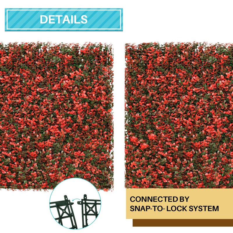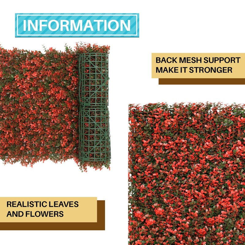 COARBOR 6 Packs 20" x 20" Artificial Boxwood Red Buxus Fence Panel Faux Ivy Fence Privacy Topiary Hedge Plant Fence Grass Wall Panels Backdrop for Balcony Patio Outdoor Indoor
