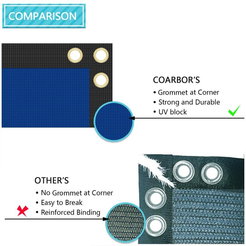 - DURABLE MATERIAL- Our Coarbor fence material is made of 100 % high-density HDPE which is 150 GSM heavy-duty. Breathable fabric allows water and air to go through freely. With this material, it will not tear or rip under normal weather conditions.