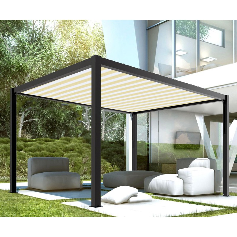 Coarbor 9'x20' Sun Shade Sail Straight Edge Rectangle Shade Cloth with Grommets Canopy Cover for Pergola Patio Deck Gazebo- Beige White Strip
