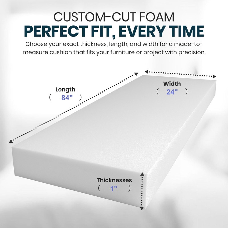Coaseb 1-Pack of 1" x 24" x 84" High Density Upholstery Foam, Foam Padding & Sheet, Cushion Seat Replacement, Crafts Foam, Seat Cushion Insert, Cushion & Seat Repair Quality Upholstery Foam