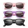 COASION Kids Polarized Sunglasses Set TPEE Rubber Flexible Shades for Girls Boys Age 3-9 Sunglasses 3 Pack (Pink/Grey + Purple/Grey + Matte Black/Grey)