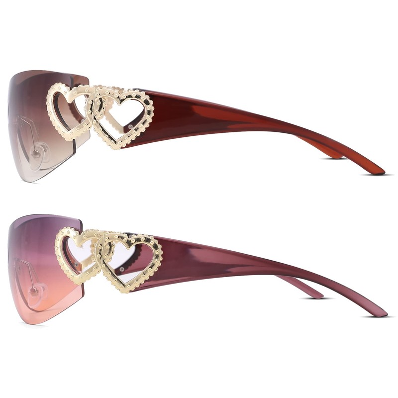 - COASION 2000s heart sunglasses are perfect for a fashion-forward statement. The oversized style is on-trend and perfect for making a statement, while the rimless design keeps you looking sleek and modern