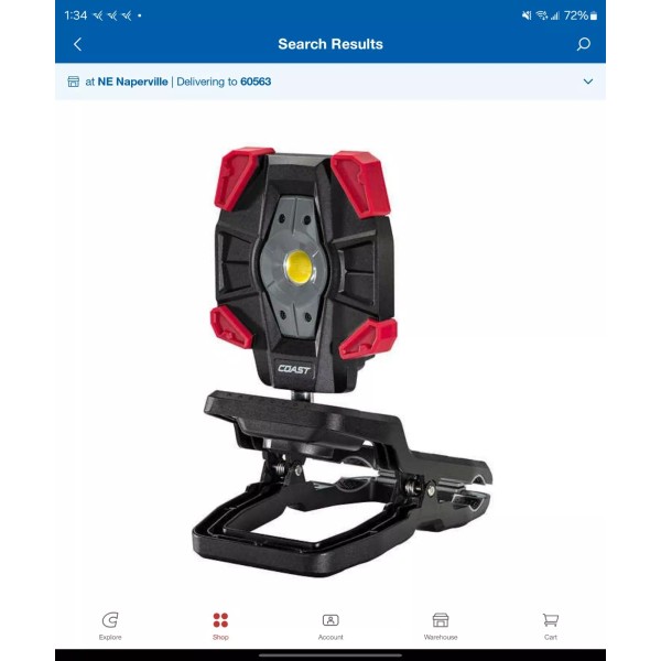 Coast 1718620 Rechargeable 3900 Lumens Clamp 3-Mode 16-Hour Work Light - NEW