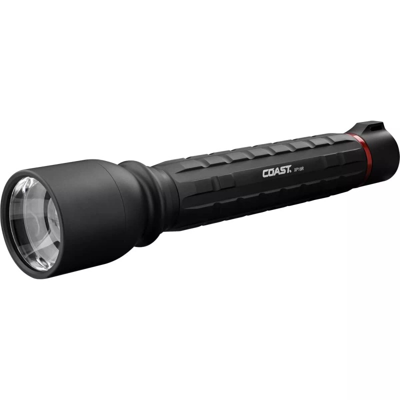 New XP18R Flashlight 10.75" overall. Water resistant. Impact resistant. Rechargeable. Lanyard. Modes: Turbo (3650 lumens); High (1460 lumens, 6h 30m runtime); Medium (420 lumens, 9h 30m runtime); Low (65 lumens, 58h 30m runtime). 330m beam distance. One-handed Slide focus. Quick-Cycle Switch System. Pro-tek charging. Portable charger. Pure Beam focus. Bulls-Eye Spot. Requires (1) Lithium battery (included), or (6) AA batteries (not included). Boxed.