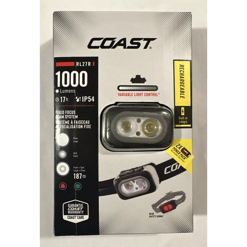 Coast Rl27r Rechargeable Plus Rear Loading 1000 Lumens Tri-Color LED Headlamp