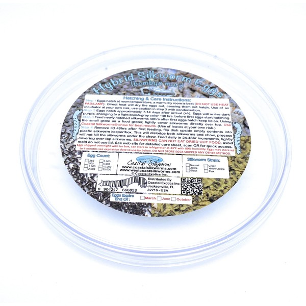 Coastal Silkworms 1,000 Count Live Silkworm Eggs Bombyx Mori (Pack of 1)