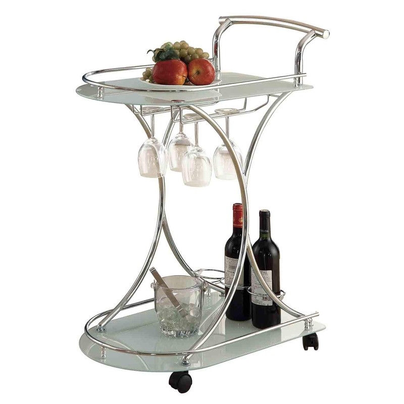 Coaster Home Furnishings Chrome and White Serving Cart with 2 Frosted Glass Shelves, 15.75"D x 26.5"W x 33.75"H, Chrome & White