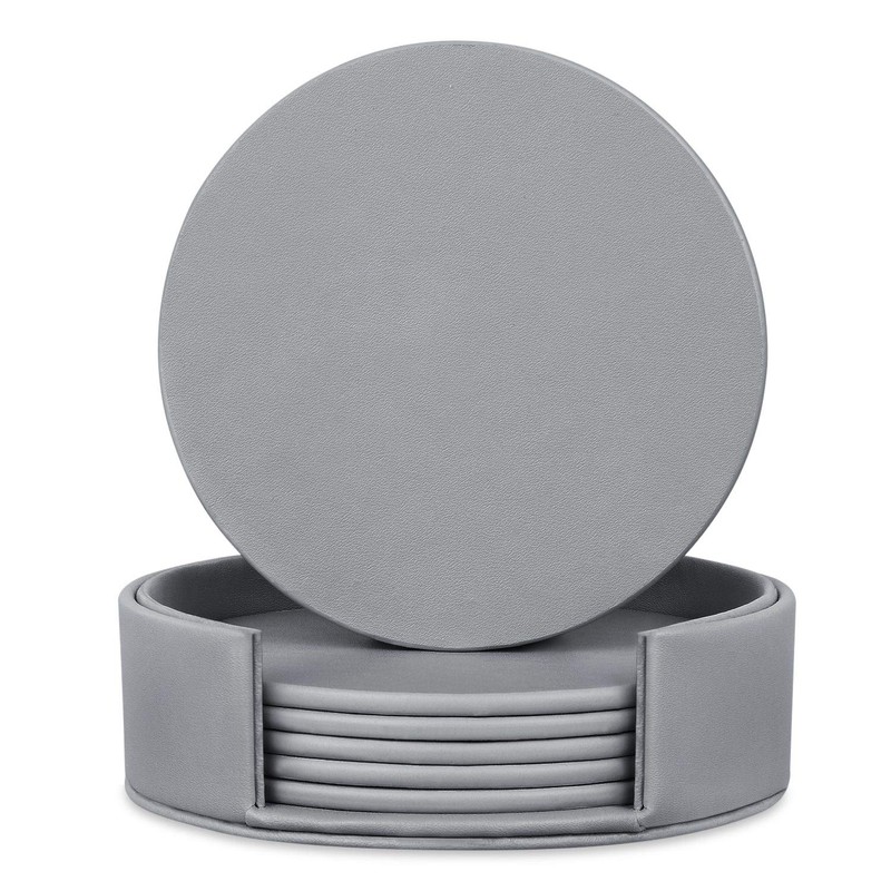 Coasters for Drinks, Thipoten Leather Coasters with Holder, Protect Furniture from Damage(6PCS, Grey)