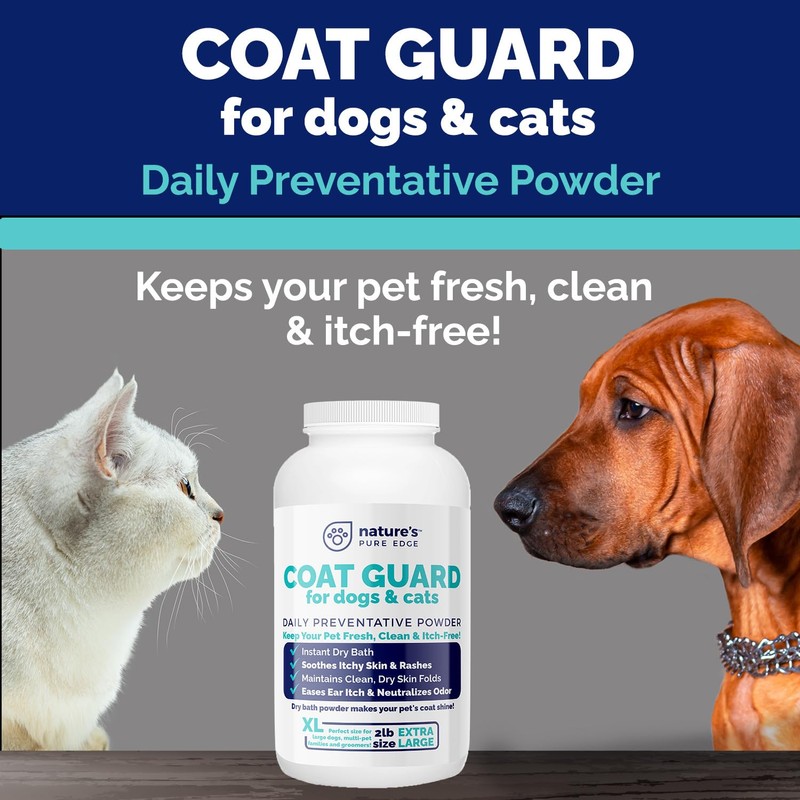 Coat Guard Dry Shampoo for Dogs and Cats - Extra Large 2 lbs Jar, Dog Dry Shampoo Powder, Waterless Dog Shampoo, Anti Itch Relief, Cedar Scented, Anti Dandruff, Hot Spots, Nature's Pure Edge