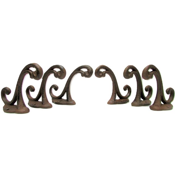 Coat Hat Hooks Cast Iron Lot Set of 6 Double Hook 3.5 Inch Antique Vintage Style