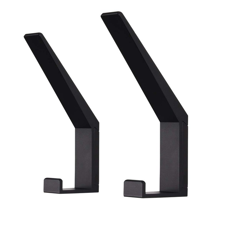 VOROMADU Coat Hooks Wall Mounted Towel Holder Heavy Duty Aluminum Double Robe Hanger for Bathroom Kitchen Office Farmhouse 2 Pack Anodized (Black)