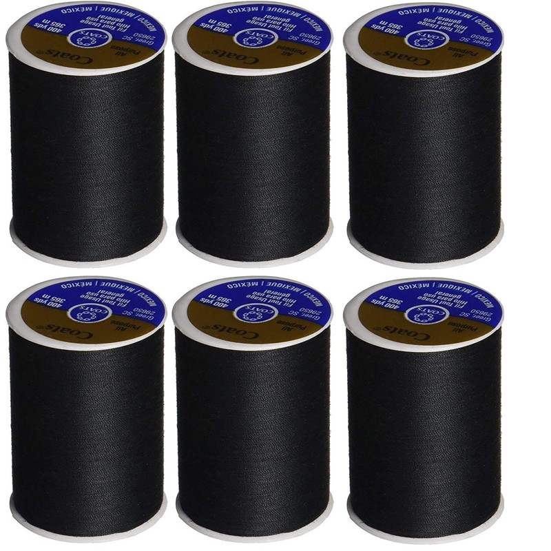 - 6-Pack of Coats & Clark Dual Duty All Purpose Thread 400 Yards Black 230-2