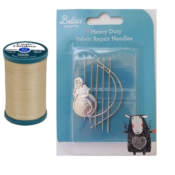 Coats Outdoor Living Thread, 200 Yards S971 Bundle with Bella's Crafts Assorted Heavy Duty Hand Needles 7 Count (Buff)