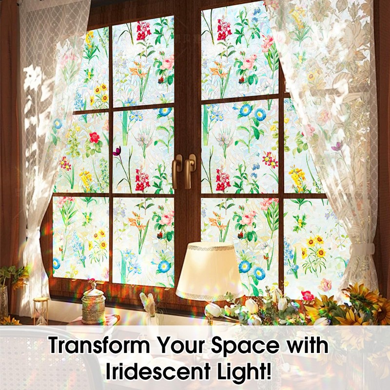 - Rainbow Magic in Sunlight: Stained glass window film vibrant laser-like rainbow reflections and elegant magnolia floral patterns. By day, it glows like stained glass when sunlight hits; by night, the delicate design remains subtly visible for 24/7 style. Unlike basic rainbow films, adds timeless elegance to any room