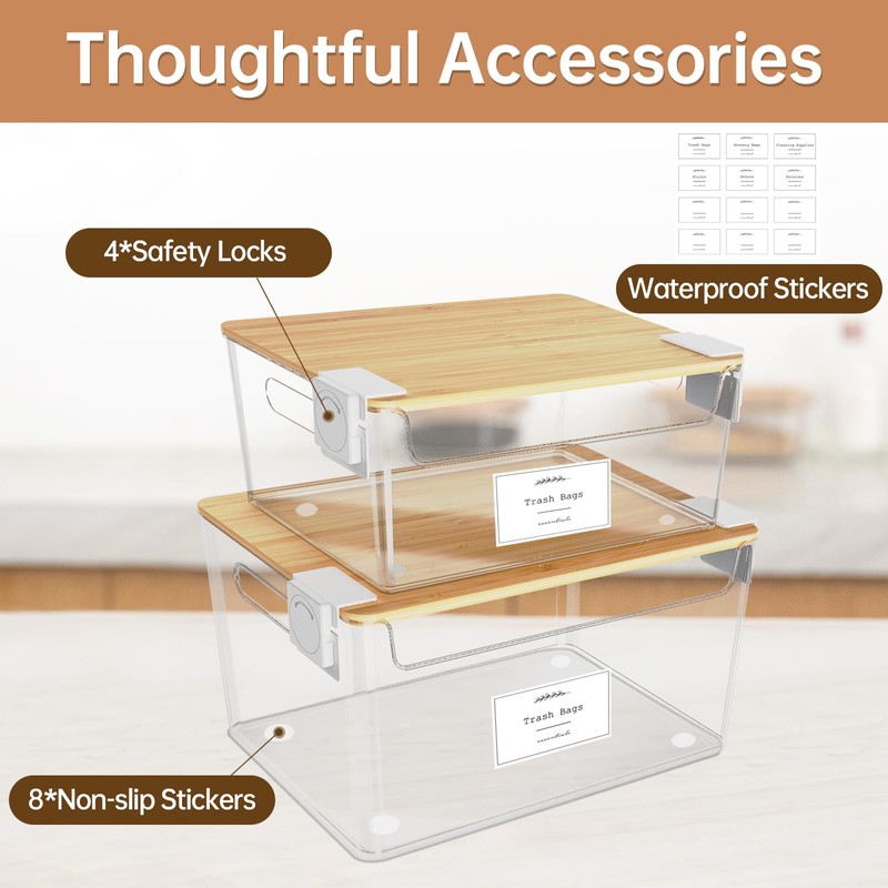- Stackable Structure: Our stackable trash bag organizer under sink optimizes vertical space. The lid enhances natural elegance and provides additional storage. Garbage bag holder dispenser is perfect for under the kitchen sink, it creates extra room for cleaning supplies.