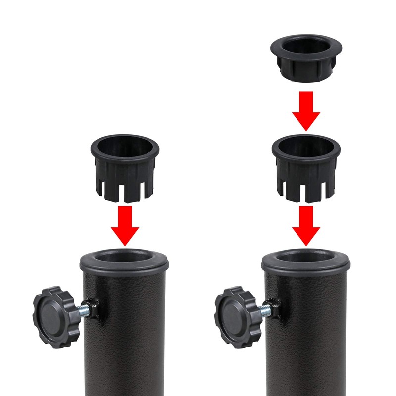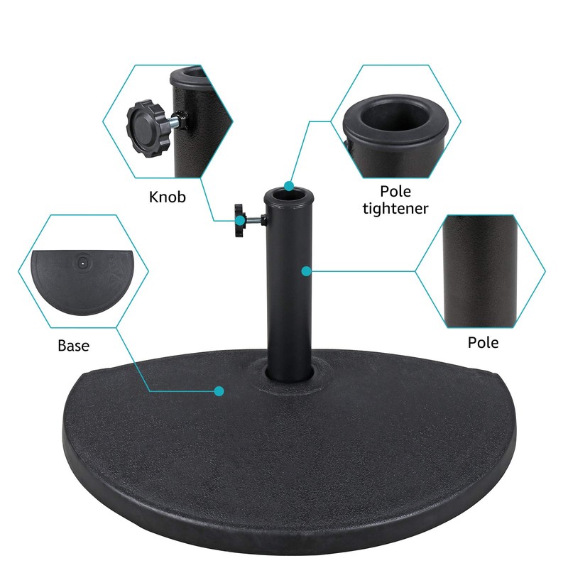 • >Adjustable Pole Holder: This umbrella base includes two plastic fasteners to allow it to fit both 1.5" and 1.89" diameter umbrella poles, almost all half market umbrellas