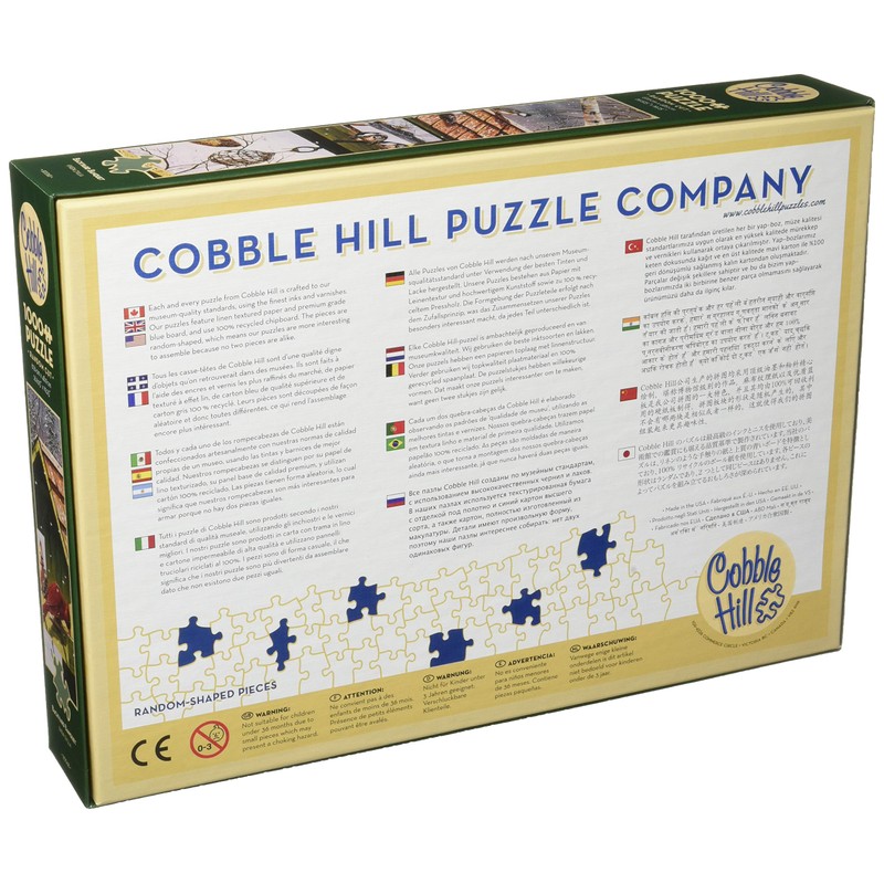Each and every puzzle from Cobble Hill is crafted to museum-quality standards, using the finest inks and varnishes. Each puzzle features linen textured paper and premium grade blue board, and uses 100% recycled chipboard. The pieces are random-shaped, which means our puzzles are more interesting to assemble because no two pieces are alike.