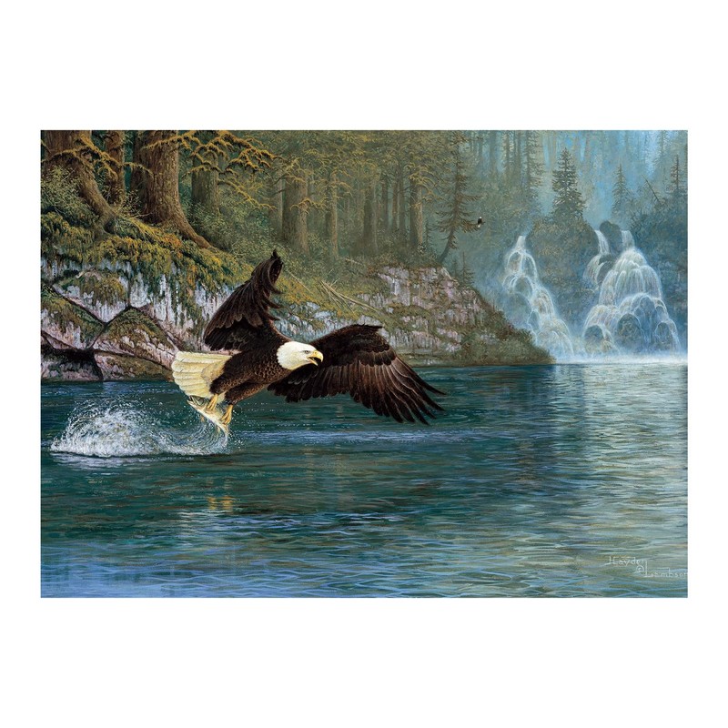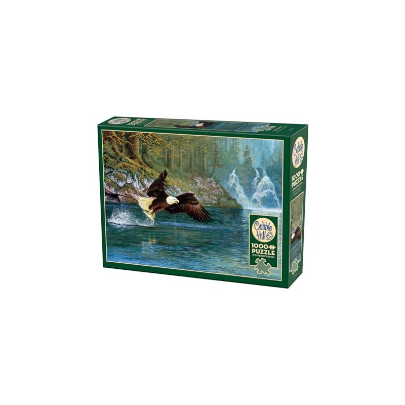 - Let the high-quality Cobble Hill Bald Eagle 1000 piece puzzle take you to a Canadian natural setting and accompany a majestic sea eagle while hunting fish.