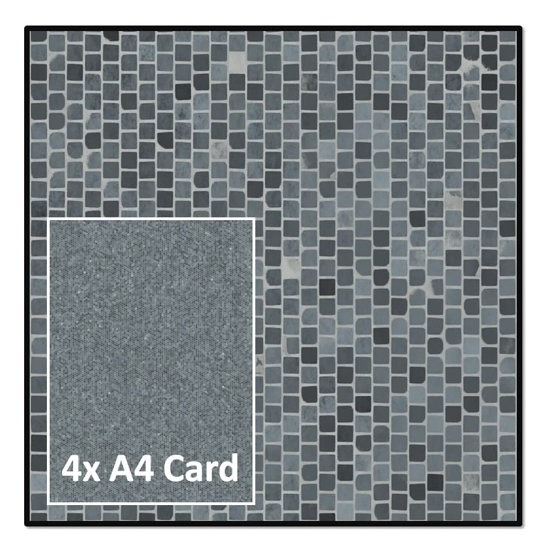 Cobbled Street & Concrete Floor Pattern Modelling Card - Double Sided - 00 Scale 170gsm Thick Backing Paper 4X A4