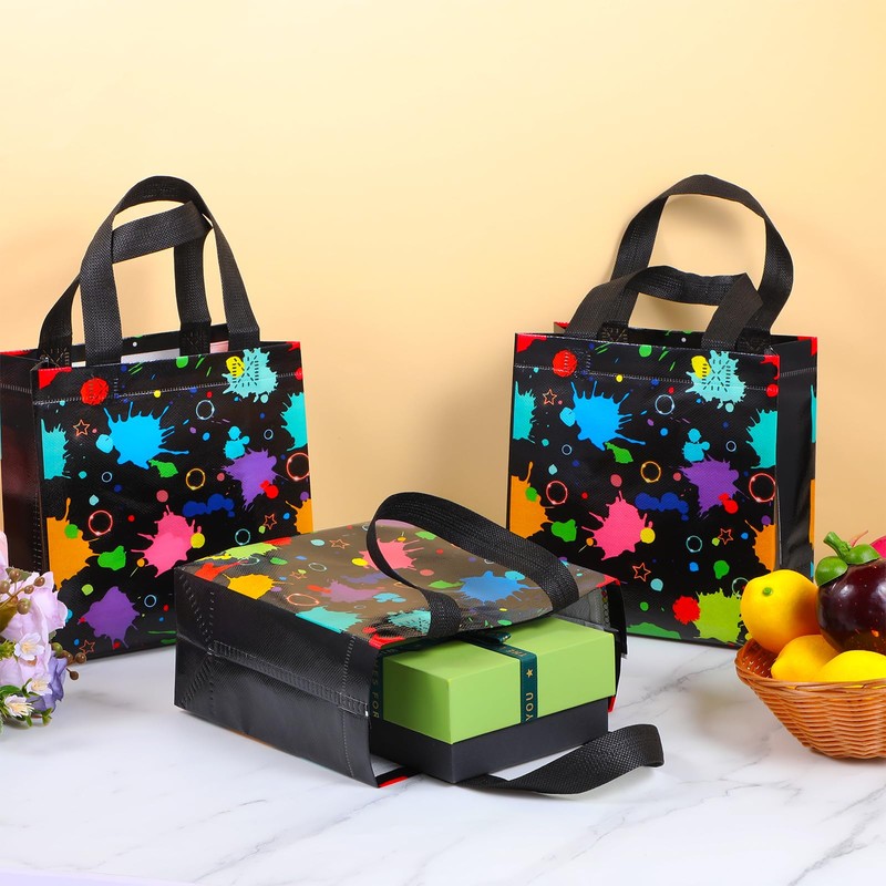 - 【Sturdy and Reusable Material】Crafted from high-quality non-woven fabric, the neon party favor bags offer superior waterproof and tear resistance compared to traditional polyester materials. Each edge of the bag is hand-sewn and hemmed for long-term reuse, making them ideal gift treat bags for glow in the dark parties.
