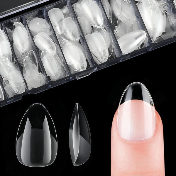- Pre-Etched Design: Our clear half-matte gel nail tips are pre-etched, appearing to have a half-matte satin finish on the inside of the nails. Cut out the nail tip prep step and save time to install. There are 3 different shapes(almond, trapezoidal, square) for you to choose from. With this pre-etched design, you can finish your nail art extension in 3 minutes!