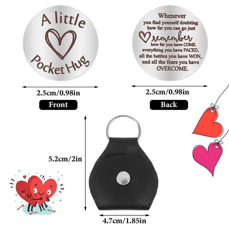 - Premium Material: This pocket hug token is made of stainless steel with a highly polished finish and beautiful engraving, the matching keychain is made of PU leather for a feel delicate and easy to wear. With a loving message and an elegant shine, this love token will not rust or change color.