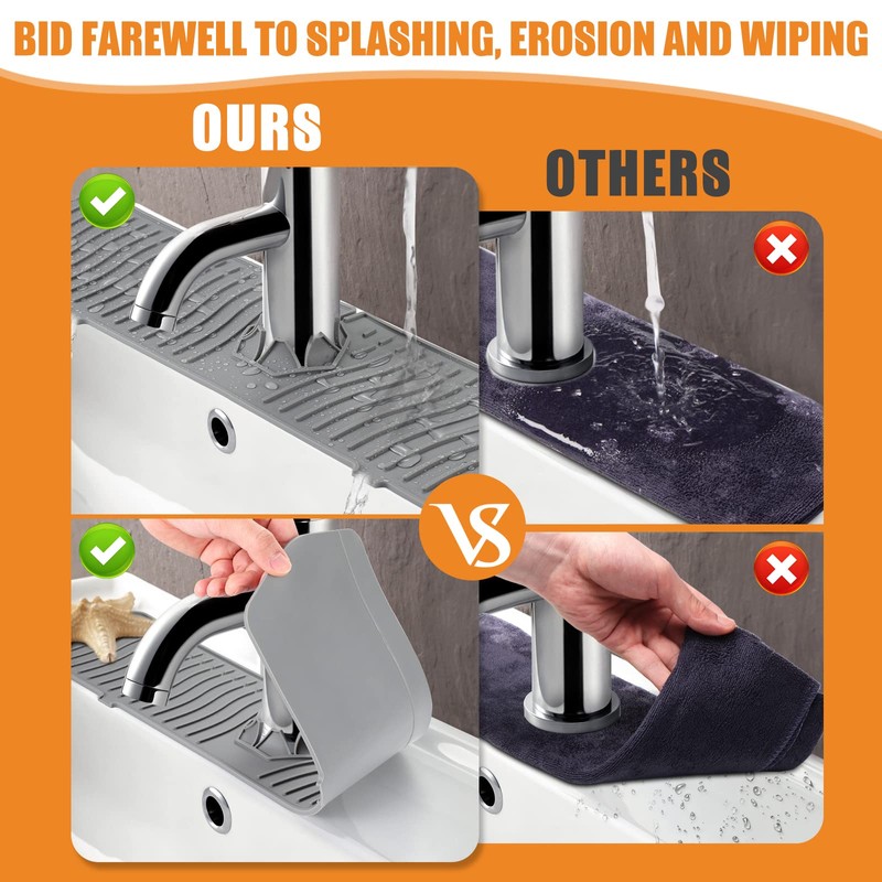 - WIPE FREE: Do you always wipe down the sink countertop after using the faucet? Hand it over to this kitchen sink mats, it frees up your hands, reduces the frequency of wiping, always keep your countertop clean and tidy!