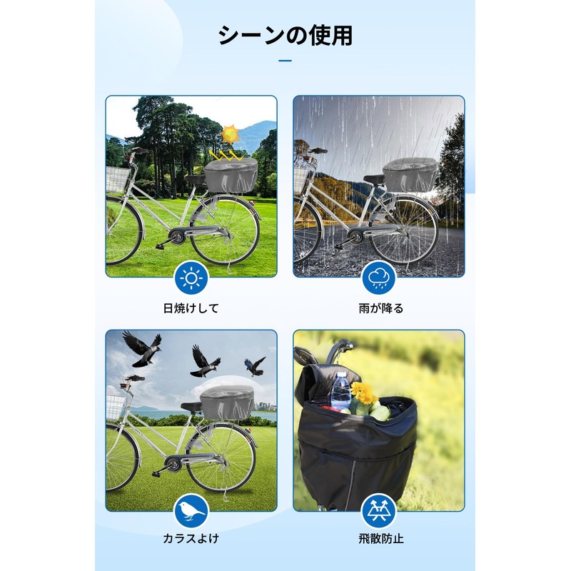 COBIVI Bicycle Basket Cover, 2 Tiers, Front Basket Cover, Waterproof, Thick, Double Zipper, Rain Protection, Front Basket Cover (Front and Rear Use), Easy to Install, Large Capacity, Compatible with Bicycles, Electric Assist Cars, Rain, Dustproof, Sunscreen, Rain, Commuting to Work Wide