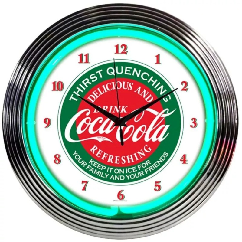 NEW Coca Cola neon clock hand blown Green neon with Chrome finished rim New in box