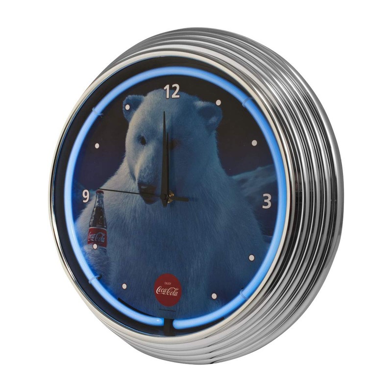 Coca Cola Polar Bear Blue Light Up Neon Wall Clock 15-Inch