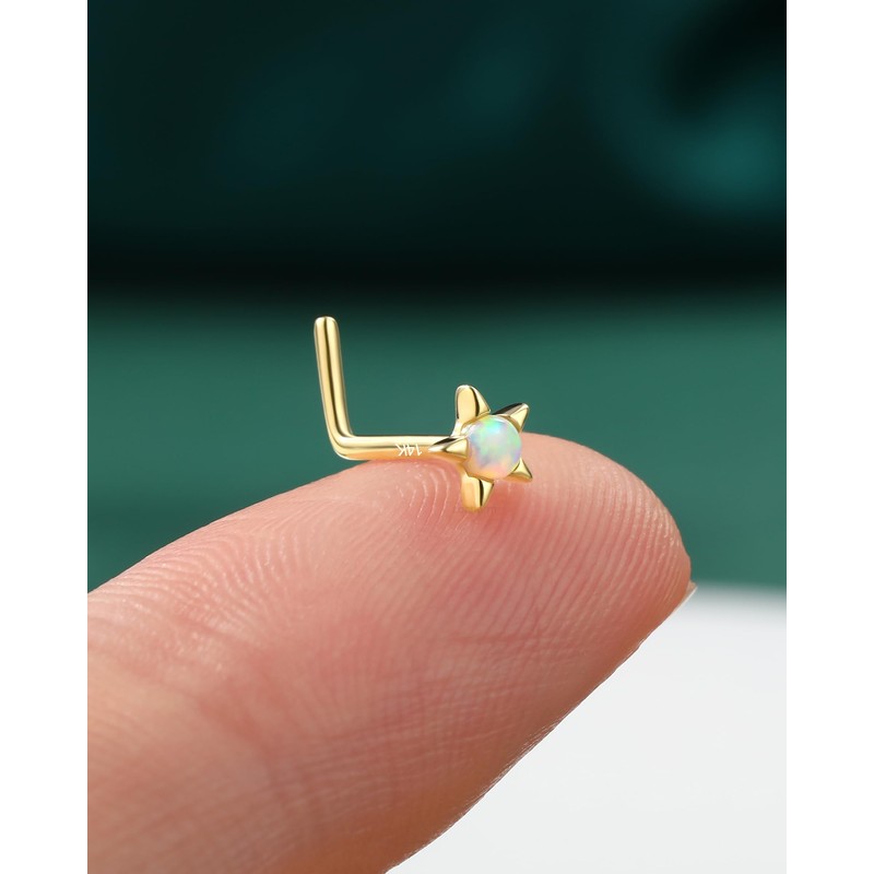 - 【VALUE PACK】1Pcs 14K Solid Gold Nose Stud 20g Star Opal Nose Ring Stud .