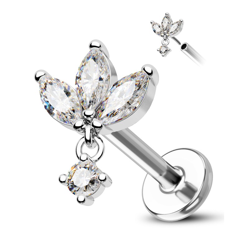 COCHARM 16g Threadless Flat Back Earrings Silver Helix Cartilage Earring Stud 6mm Floating Helix Cartilage Piercing Jewelry Lotus Flower Helix Cartilage Tragus Stud Short Bar Floating Helix Jewelry
