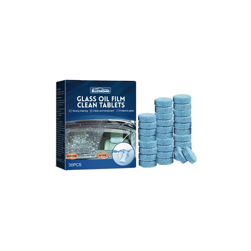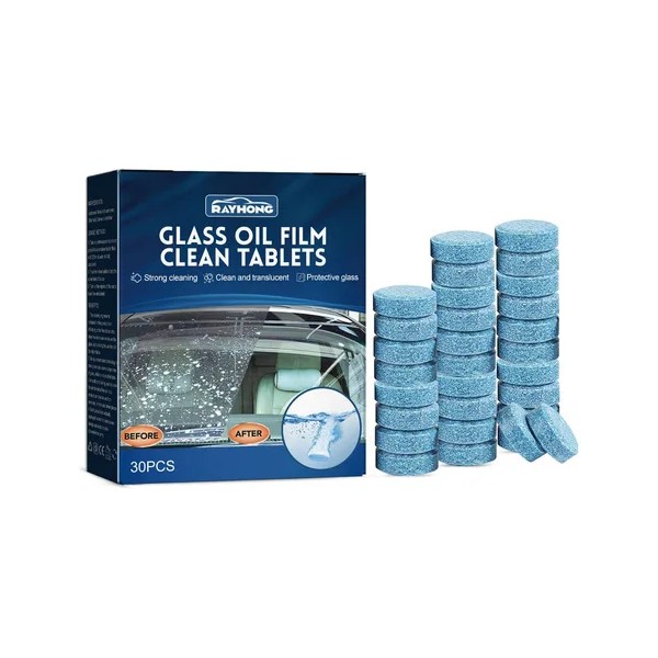 Tabletas efervescentes limpiadoras de películas de aceite para automóviles, tabletas efervescentes para eliminar el aceite del parabrisas de los automóviles, resistentes a la lluvia y antivaho