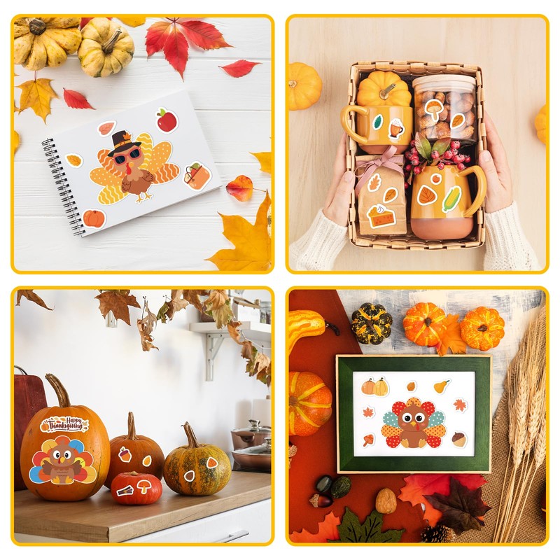 - Applicable Occasions: Thanksgiving stickers for kids Would be perfect for gift bags or preschool class craft activity, finished make a turkey stickers can be used as room decoration, refrigerator stickers, notebook decoration, pumpkin basket bucket, Thanksgiving treat bags, window, wall, door, invitation card, thank you card etc. You can also use stickers as a visual reward to encourage your students