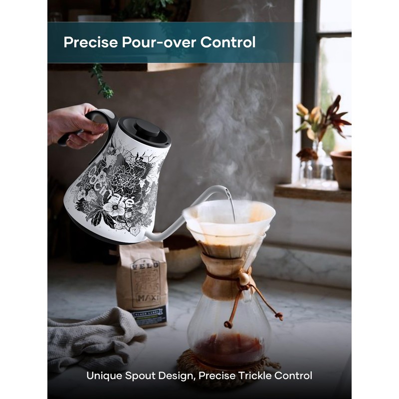 Cocinare FLOW M9 Electric Gooseneck Kettle, ±1℉ Temperature Control for Pour-over Coffee & Tea, Stainless Steel Interior, Quick Heating for Boiling Water (Wave)