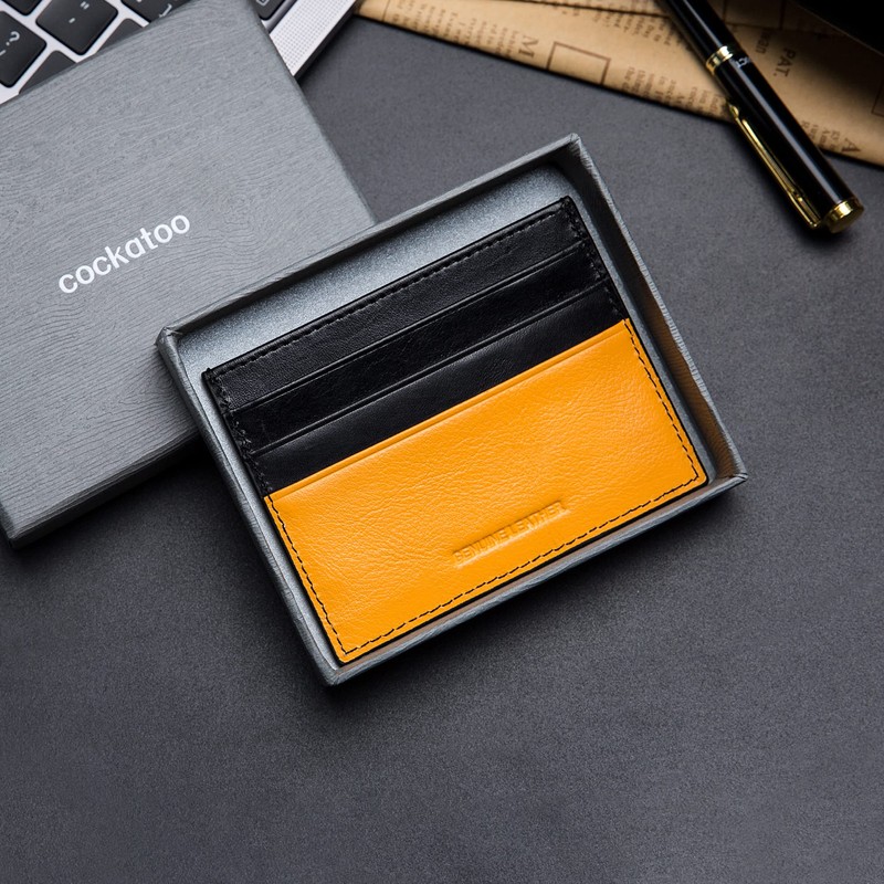 Cockatoo Slim Minimalist Leather Wallet, Front Pocket Wallets Credit Card Holder/Slim Front Pocket Wallet, Card Case Minimalist Wallet, BLACK/YELLOW