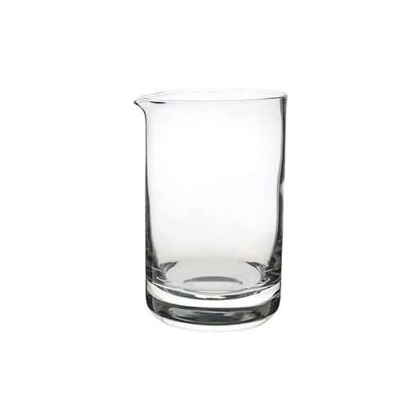 - Clear plain mixing glass with pouring spout for preparing cocktails.