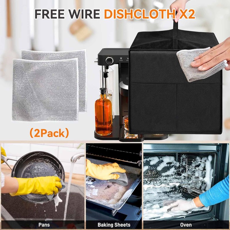 - Wire Miracle Cleaning Cloth: With the cocktail machine dust cover, you will also receive a powerful multi-purpose cleaning cloth Wire Miracle X2, which can easily clean sinks, stoves, worktops and other surfaces. Their versatility makes them an essential tool in the kitchen and makes it easier for you to complete a variety of cleaning tasks. It can withstand multiple washes and retains its performance. It can be used for cookware, sinks, dishes and stoves to keep them clean.