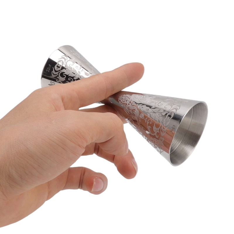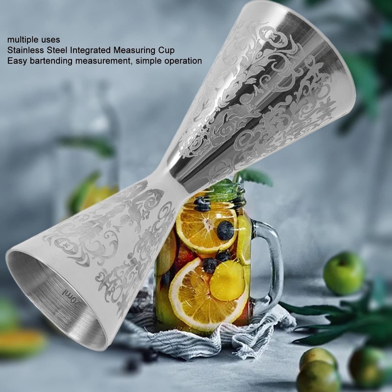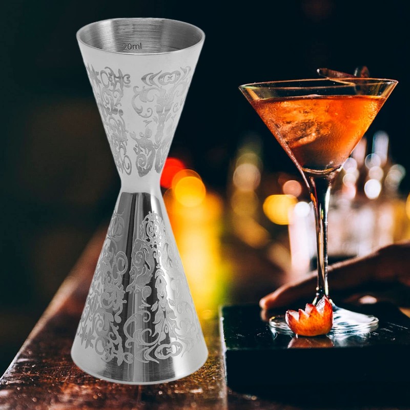 Cocktail Messbecher, 30ml 45ml Edelstahl Doppelbecher Exquisite Gravur Bartender Jigger Ausgießer Messbecher