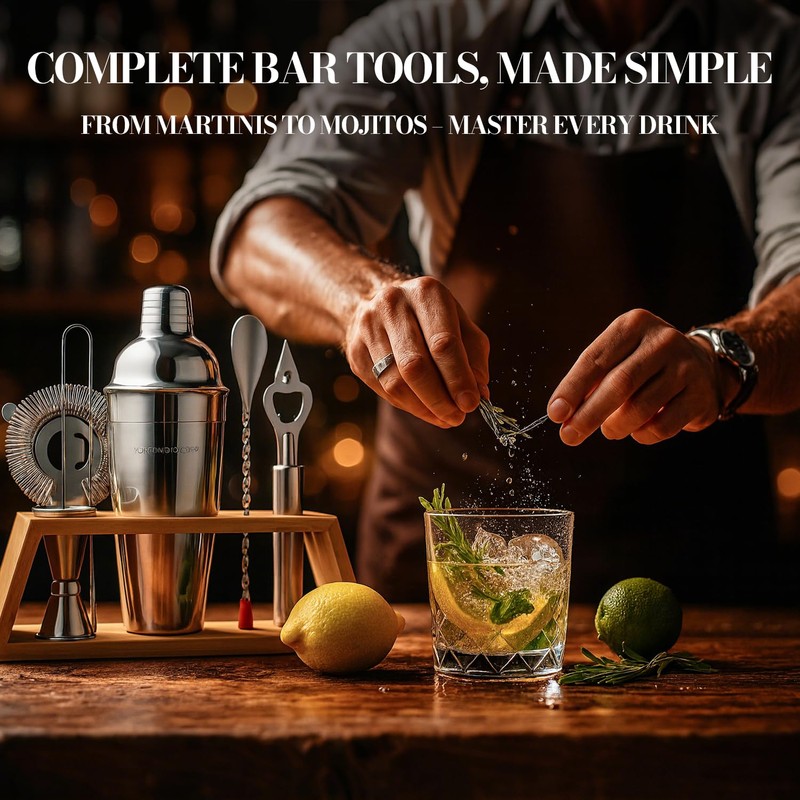 - Premium Durability & Polished Finish: Crafted from sturdy stainless steel, this cocktail set is designed to last for years. Scratch, dent, and rust-resistant, with a polished finish that keeps your shaker and tools looking flawless—whether hand-washed or in the dishwasher—giving every cocktail a professional, elegant touch