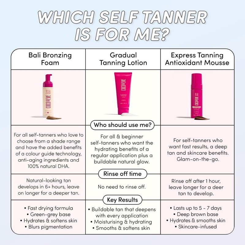 - NOURISHING TROPICAL OILS. A healthy and nourished, sun-kissed look by leaving skin soft, smooth and luminous. No mess, fuss-free tanning for tanners with every level of self-tan skill.